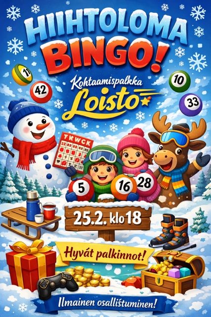 Koko perheen bingopallot pyörivät jälleen Kohtaamispaikka Loistossa 24.2. ja 4.3. klo 18.00! Osallistuminen on ilmaista mutta palkinnot valt