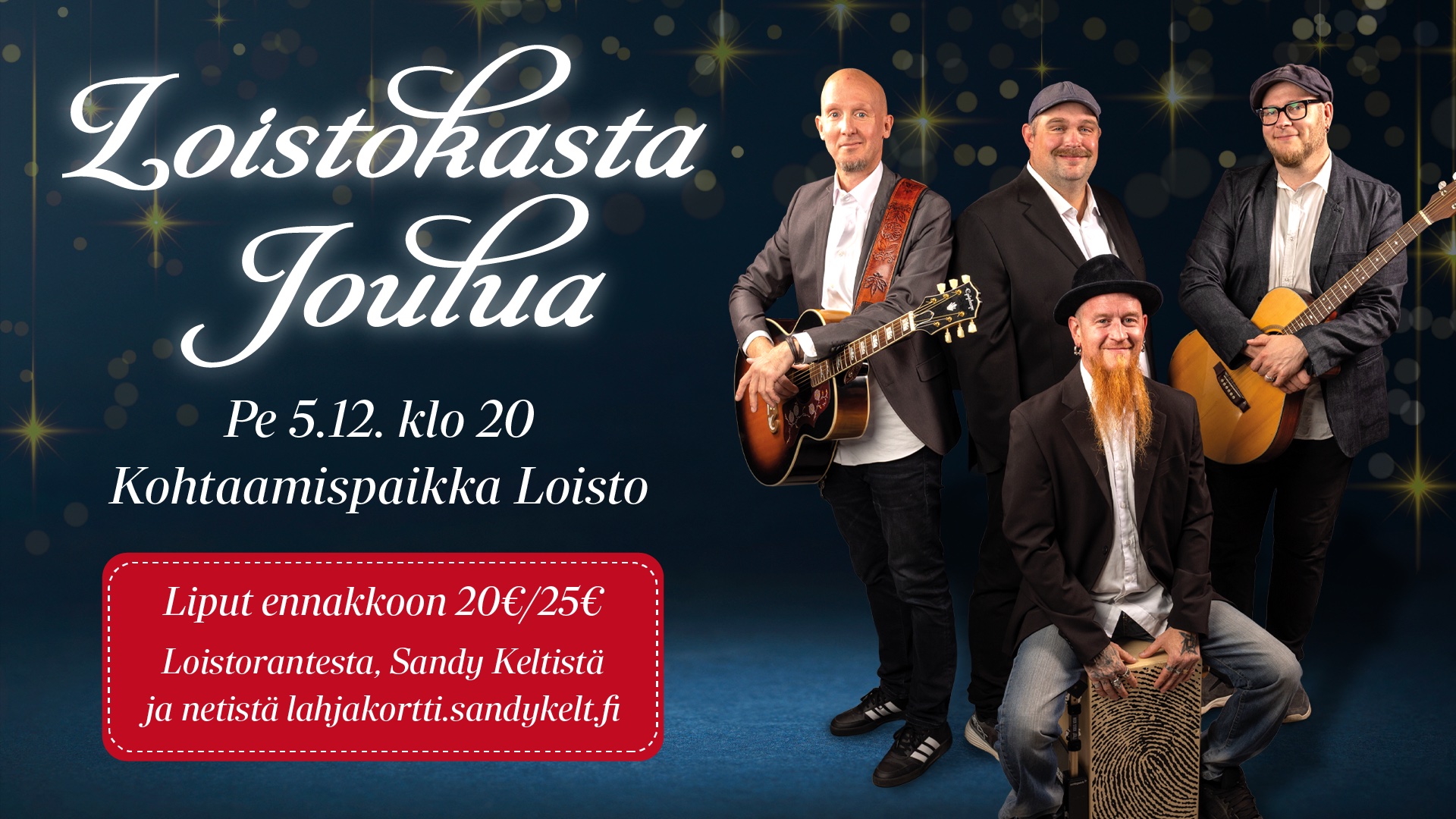 Loistokasta Joulua on viihteellinen joulukonsertti Kalajoen Joulutervehdyksen tekijöiltä. Takavuosina Kalajoen kirkossa kuullut isot sovitukset sekä Havulan Joulun että Virta-salin viihdekonserttien valitut palat kuullaan nyt uudessa akustisessa muodossa Kohtaamispaikka Loiston jouluvalojen loisteessa!